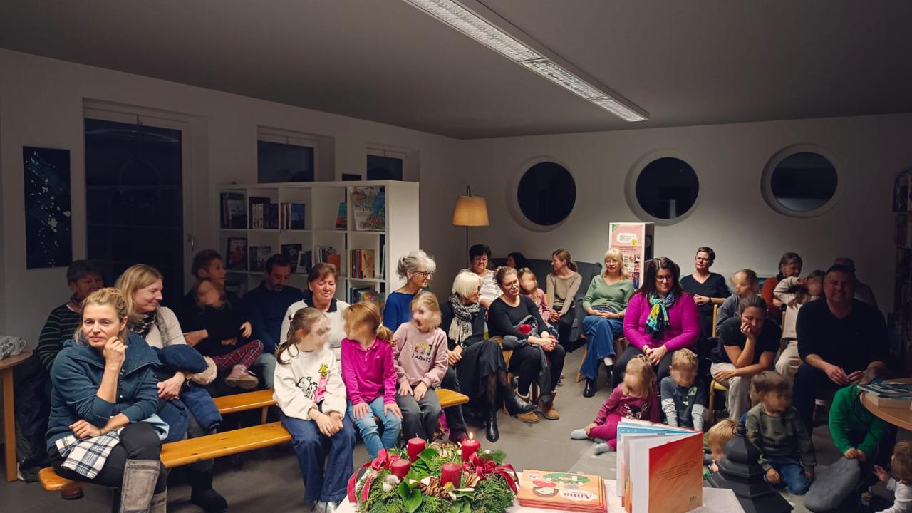 Am 4. Dezember 2025 fand in unserer Bücherei eine stimmungsvolle Weihnachtslesung statt, zu der viele Kinder und Eltern gekommen waren. Die kleinen und großen Zuhörer lauschten gespannt der Geschichte „Anna lernt das Warten“, ein Buch von Sieglinde Pfänder, die mit ihren warmen Botschaften perfekt in die Adventszeit passte.